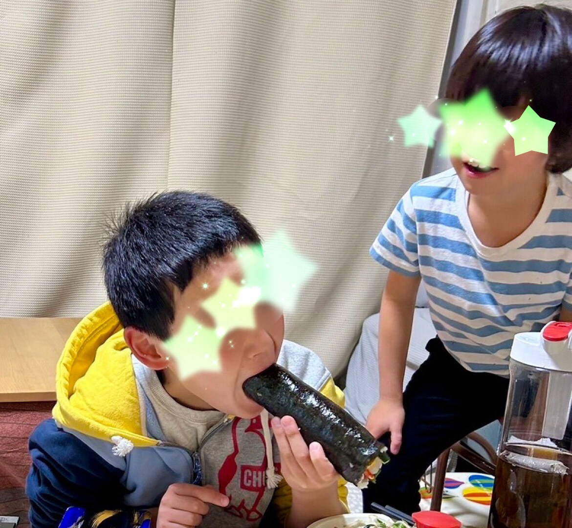 恵方巻きの食べ方って、子どもにとってゲームですよね(笑)
