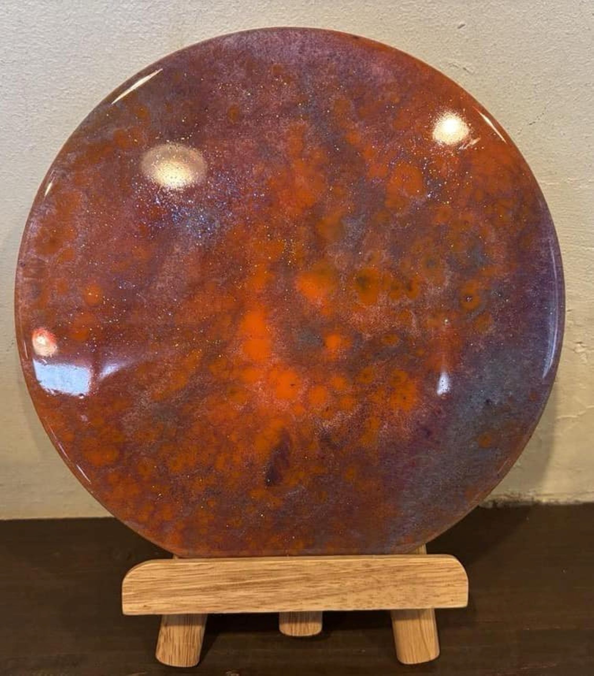 絵具で海を描き、樹脂を流し、ヒートガンで波を一気に描きます🌊