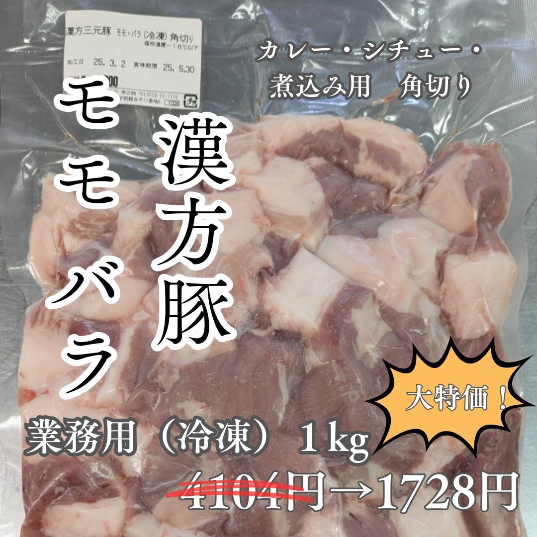 名称:漢方豚モモ バラ(冷凍)内容量:約1kg原材料名:豚肉モモ バラ消費期限:パッケージに記載