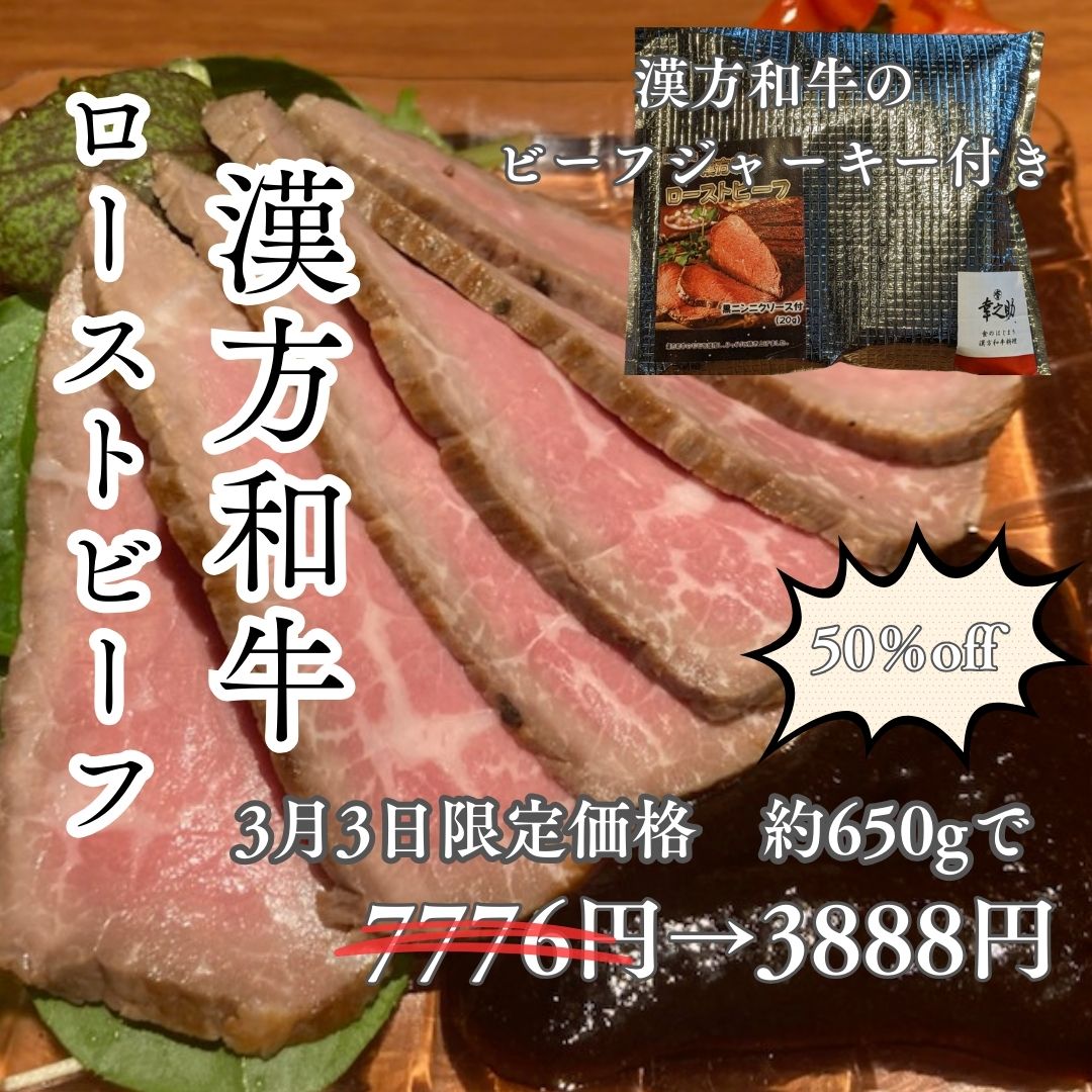 3月3日(月)6:00 スタート 半額!大特価商品! 〜漢方和牛ローストビーフ・漢方豚 業務用〜