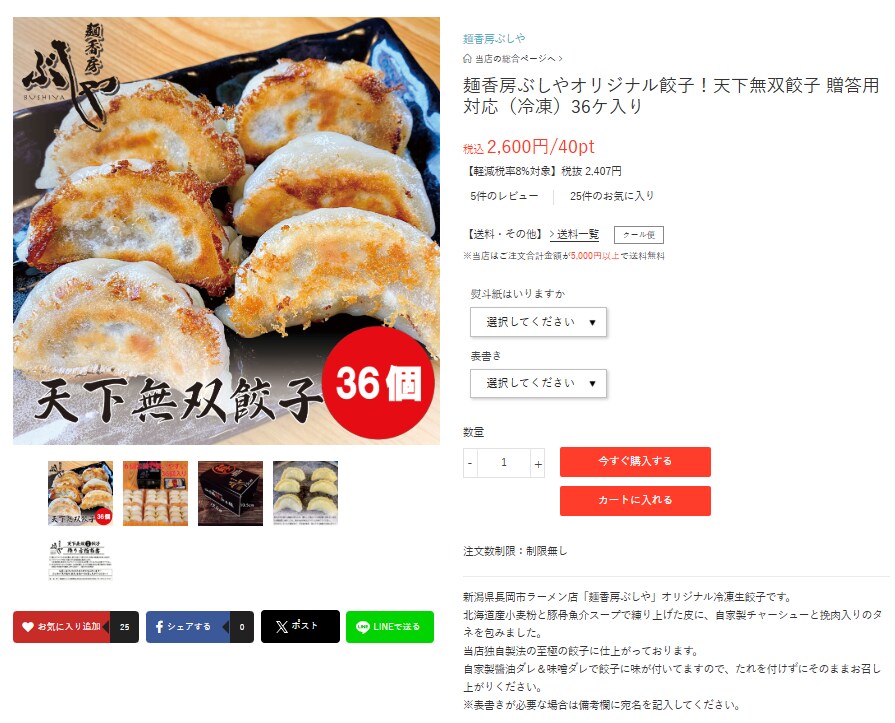 餃子は、ぶしやの店舗では食べることが出来ず、店舗で冷凍餃子を購入するか、通販で購入するかの2択なのです✨