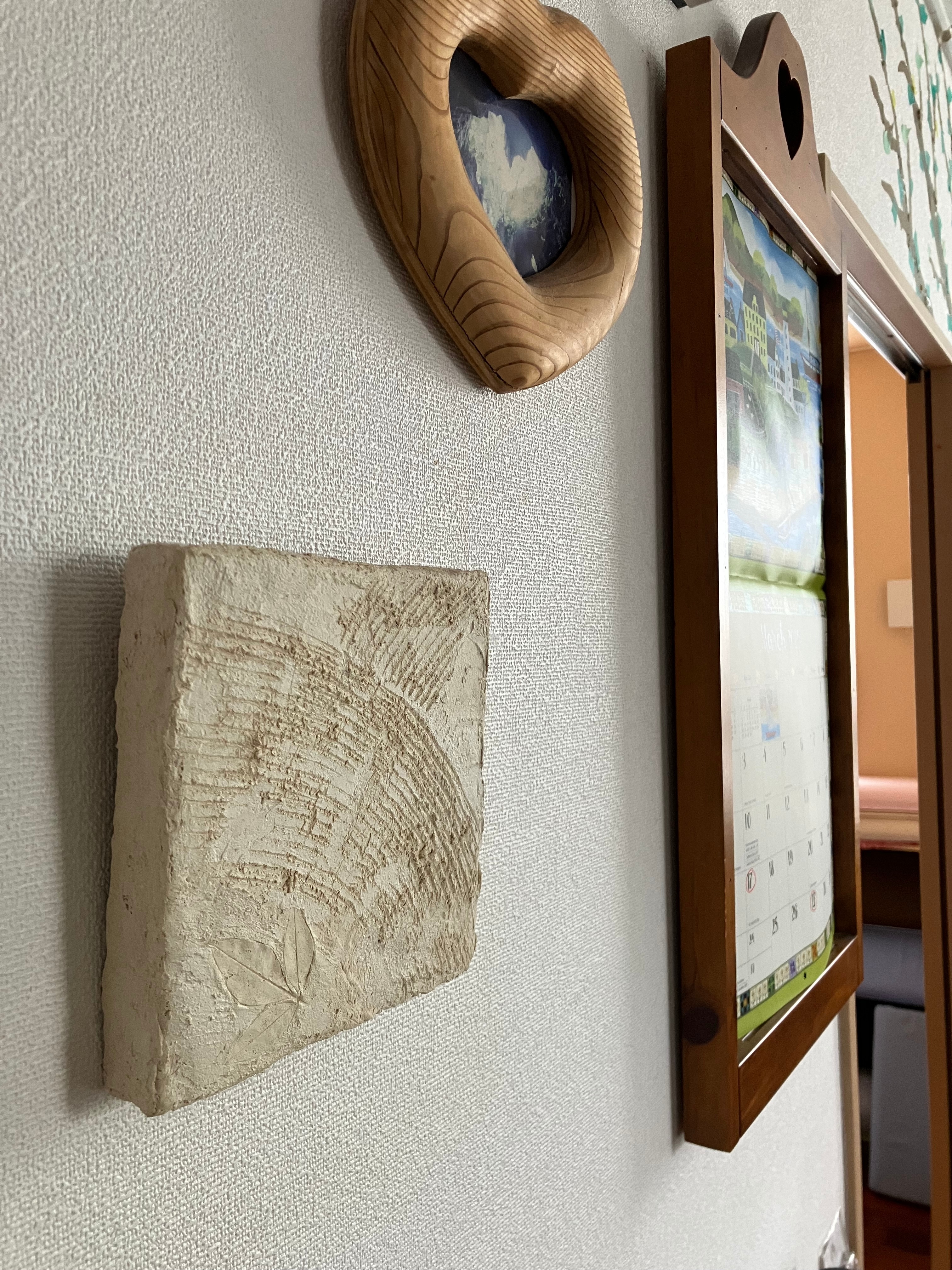 友人の裕子さんが作った“月桃漆喰アートパネル”をお店に飾っています。