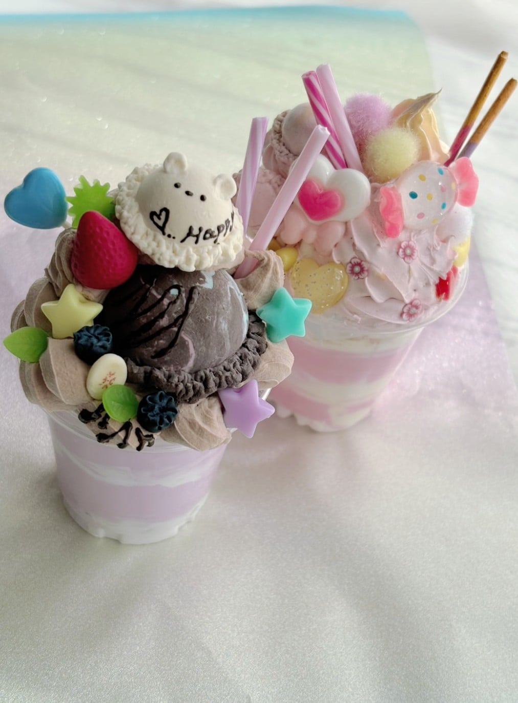 スイーツデコ体験は主に手作りの粘土パーツを使ってもらい