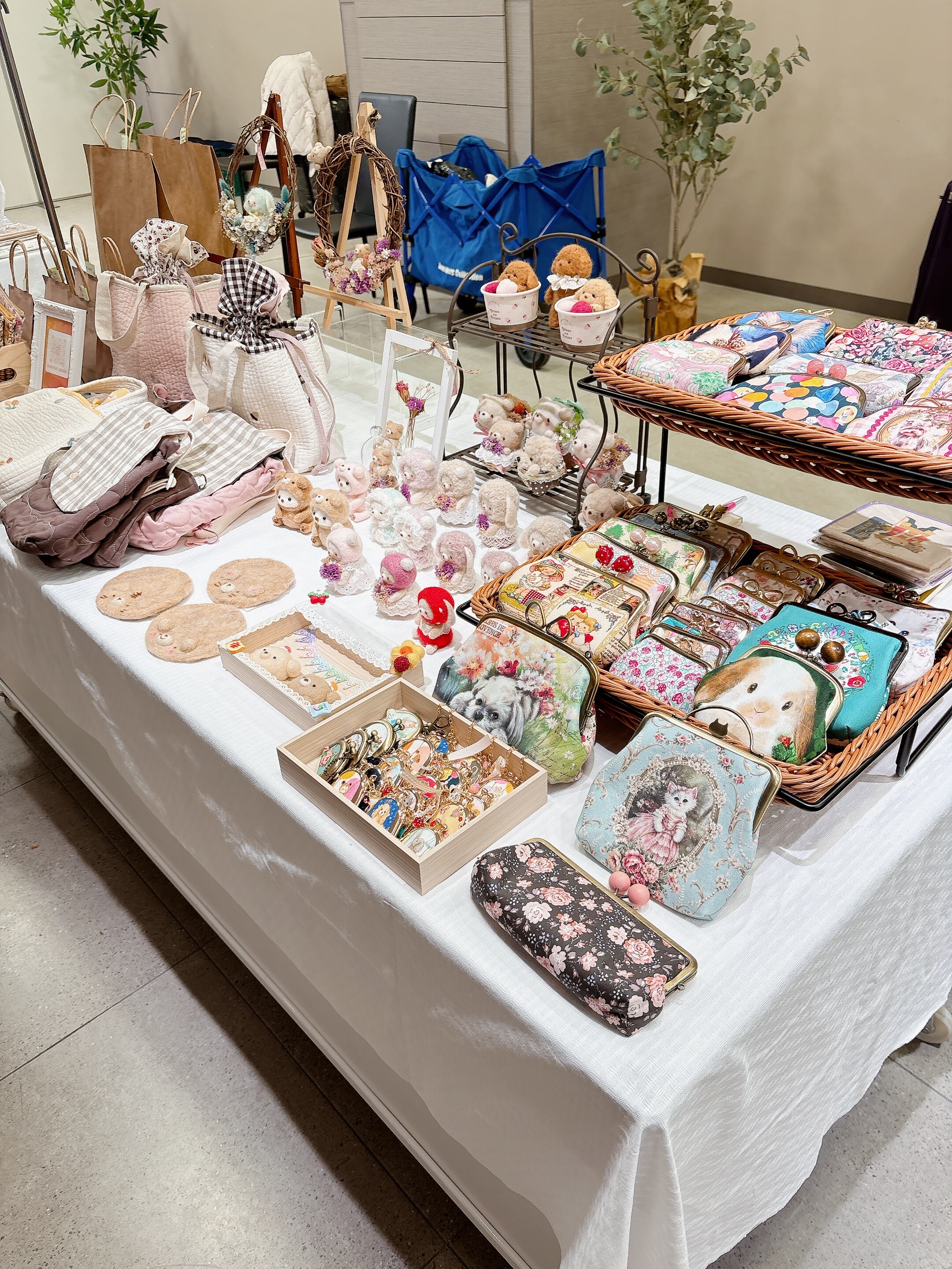 布小物はデザイナーさんへオーダーした生地が多く、パーツも職人さんが手作りしたものをメインに使っています。