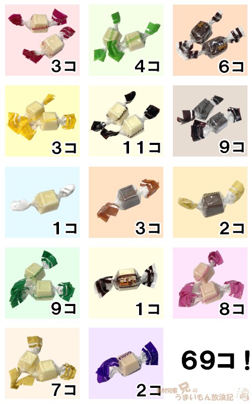 全種類入ってました!偏りはありますが69個も入っててお得~!
