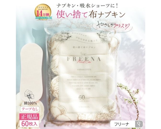 【使い捨て布ナプキン フリーナ 60枚入 テープなし/綿100%】