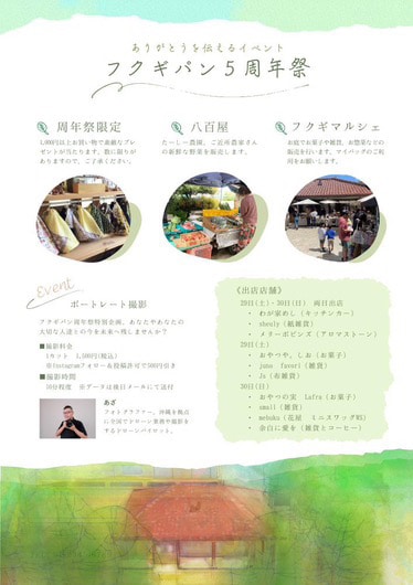 5周年を迎えるフクギパンさんの周年イベントで、ゲスト出店させていただきます。