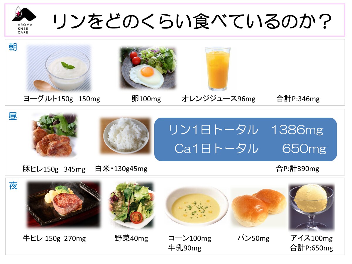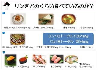 リンの1日のトータル摂取量は約1350mg。