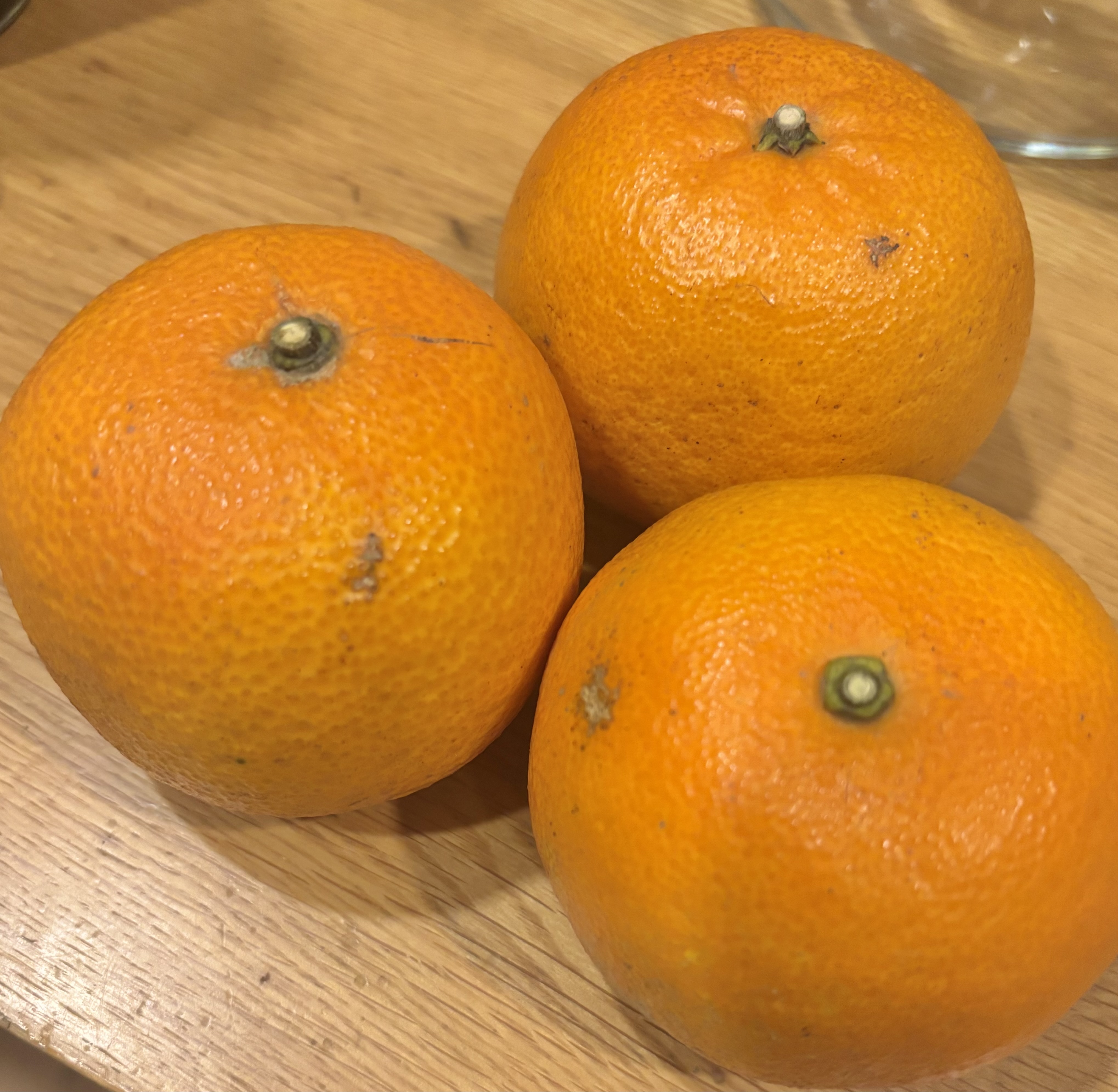毎日絞ってフレッシュジュースにしていたら、箱いっぱいのたんかんがあっという間に最後の3つになってしまいました。
