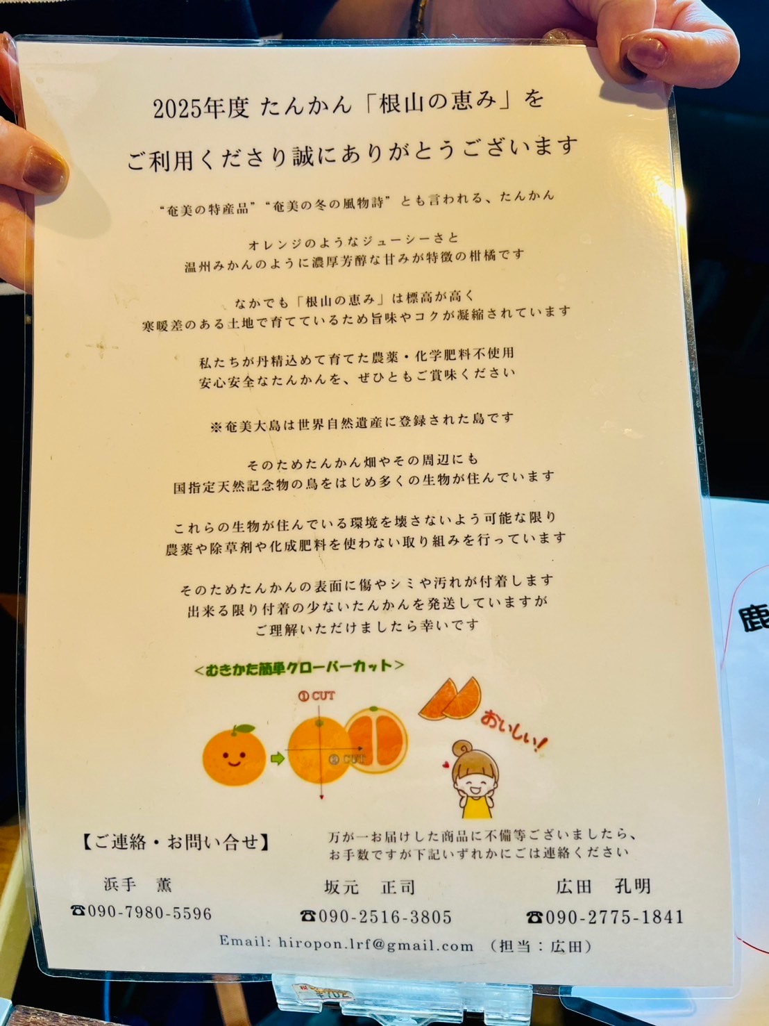 たんかんは、カットの見本を添付してご案内。