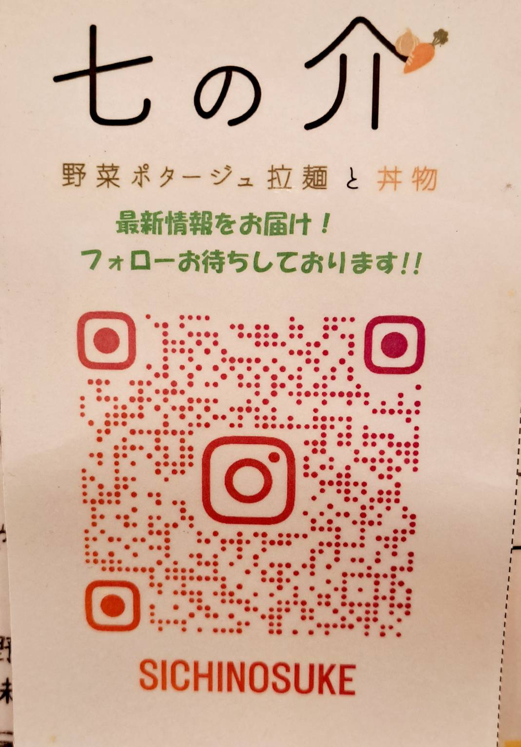 店名: 野菜ポタージュ拉麺と丼物 七の介
