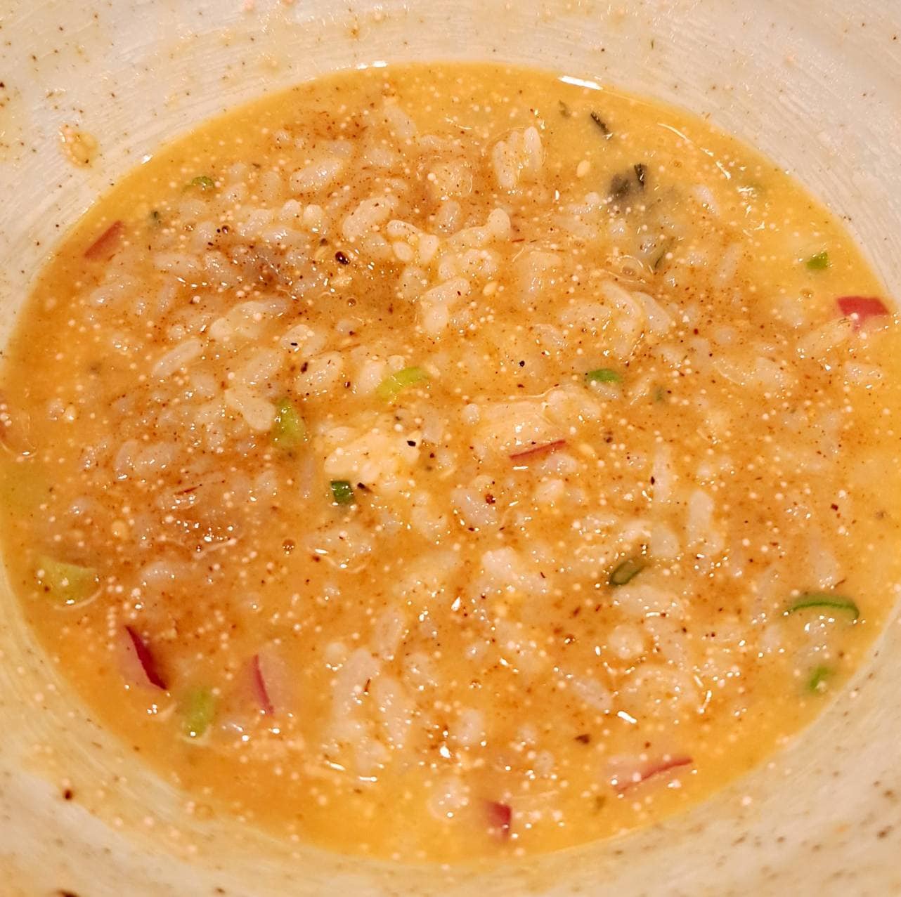 麺を食べ終わったら、ミニ魚粉ごはんをスープに入れて「リゾット風」にしていただきました✨