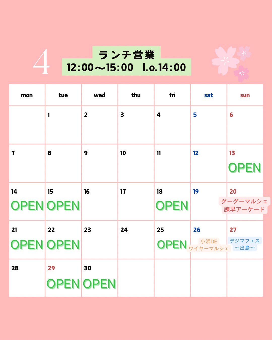 4月の営業予定🐮