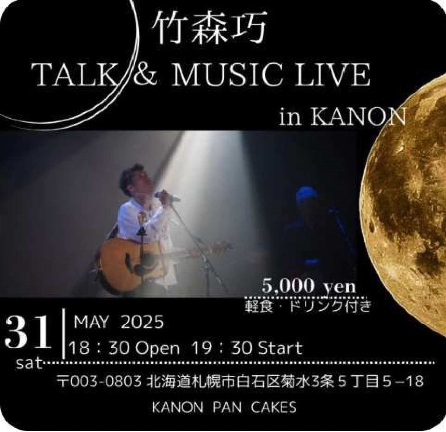 【夜カノン】竹森巧 トーク&ミュージックライブin KANONのご案内です!
