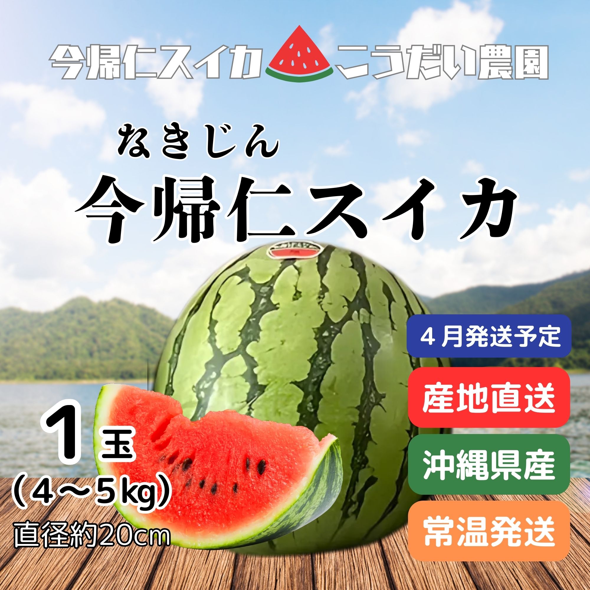【種の少ないスイカ】沖縄産今帰仁スイカ1玉(4〜5kg、直径約20cm)|4月に常温配送