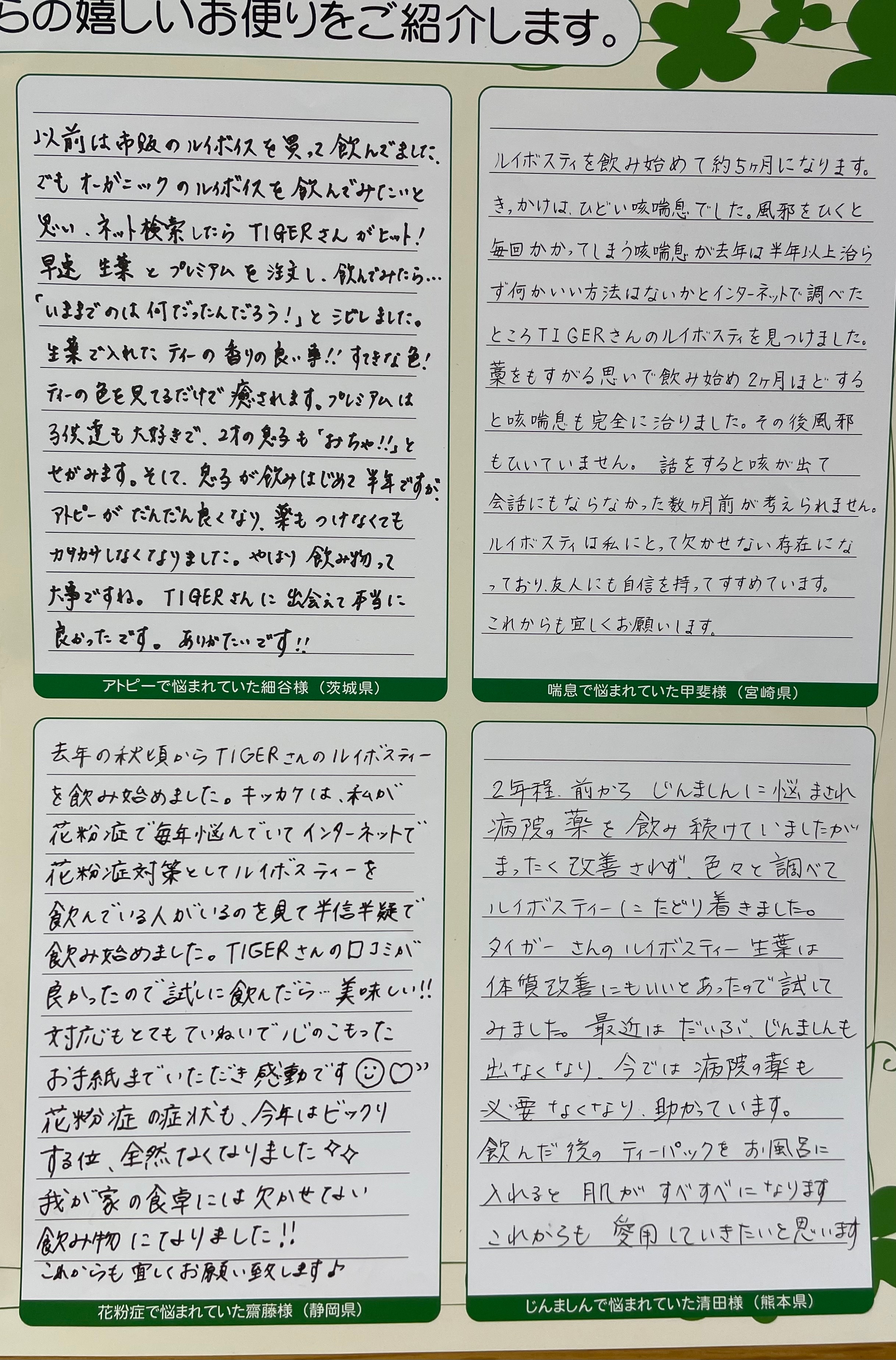母の日のプレゼントにタイガールイボスティーいかがですか?