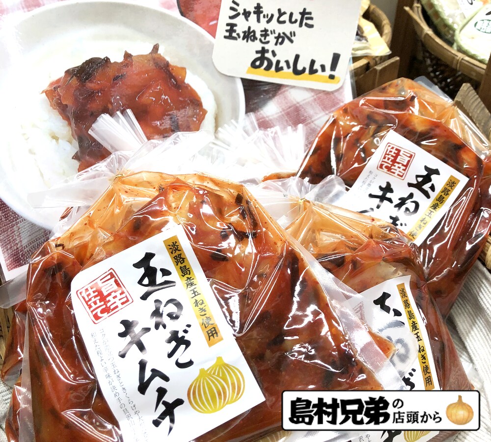 【島村兄弟の店頭から】 ![]() 今月は奥田トマトが入荷をしてきました。 トマトの常軌を逸す甘さ、青臭さの少ない奥田トマトは、もはや淡路島のブランド的存在となりました。 その年の販売が終了してすぐ、来年の予約待ちのお電話がかかってくるほどです。 切り分けたものを少々戴いたのですが、例年と違わぬ甘さと味の濃さでした。 今年の奥田トマトはピークを迎え、このメールが届くころにはそろそろ終わり…かと思います。 ですが「淡路が誇る味覚」然とした奥田トマト。 機会がございましたら、ぜひご賞味くださいませ。 ![]() 新商品の紹介です。 こちらは玉ねぎだし天です。 濃いおだしを含んだ天かすで、あっさりとした料理には華を添え、味の濃い料理には脇役として活躍をします。 おにぎりに混ぜると「悪魔のおにぎり」になりそうですね(・∀・) ![]() お料理が得意なスタッフさんが、玉ねぎだし天を使ったお好み焼きを作って来てくれました! やはりソースの風味が強く玉ねぎだし天の存在を感じず(*´з`) しかしお好み焼きは絶品で、一緒に入れていただいた玉ねぎもシャキシャキでとっても美味しかったです(#^.^#) ![]() お次は玉ねぎキムチ。 こちらも非常に攻めた商品ですね。 「キムチ大好き!」なわたくしが食べてみたところ、それほど辛くなく、キムチと言うよりも辛みそっぽいお味?でした。 キムチ愛好家として「キムチ」として認定するにはいささか懐疑ですが、ご飯と一緒に食べるには最高のおかずでした(ΦωΦ)。 白米が進みますよ~☆ ◆・◆・◆