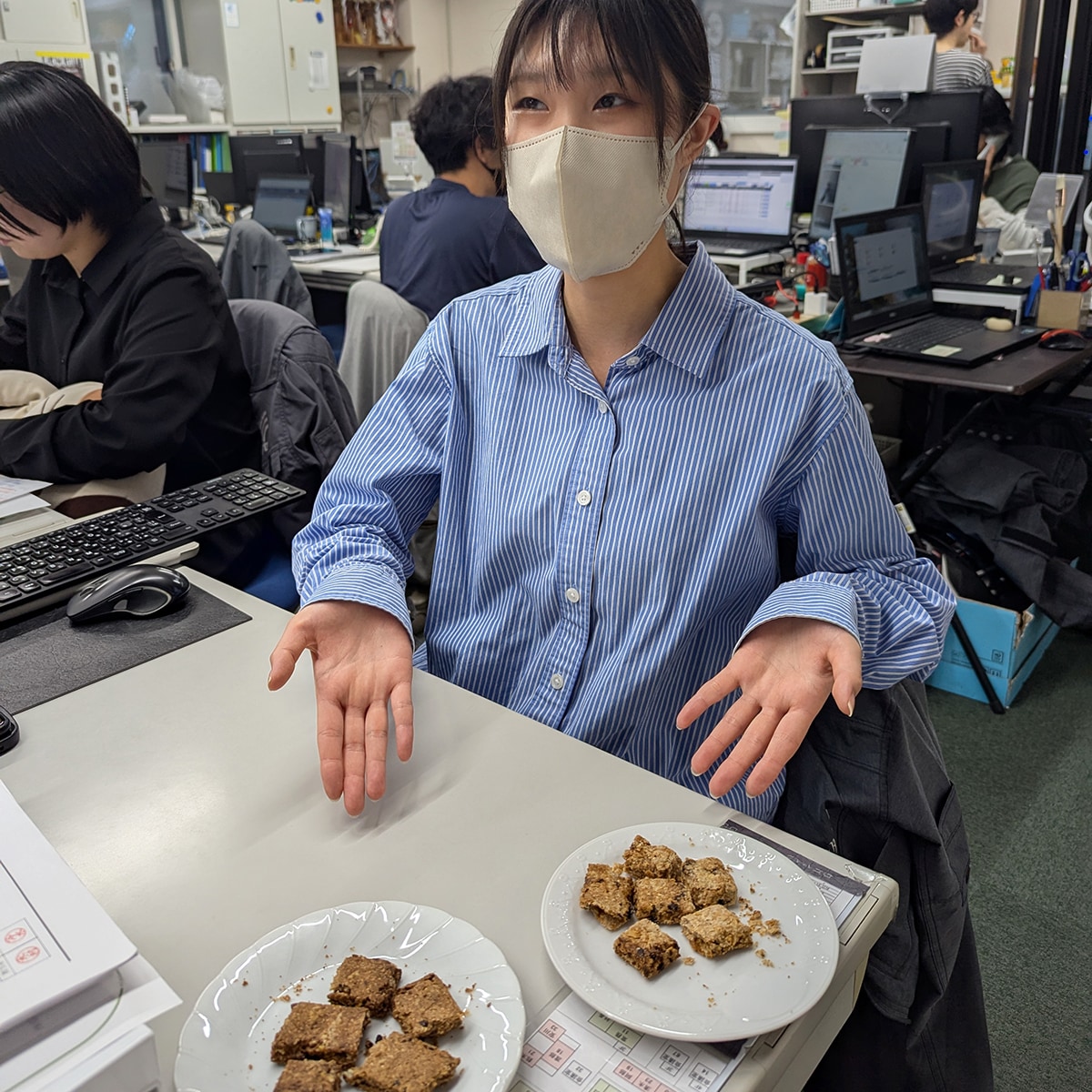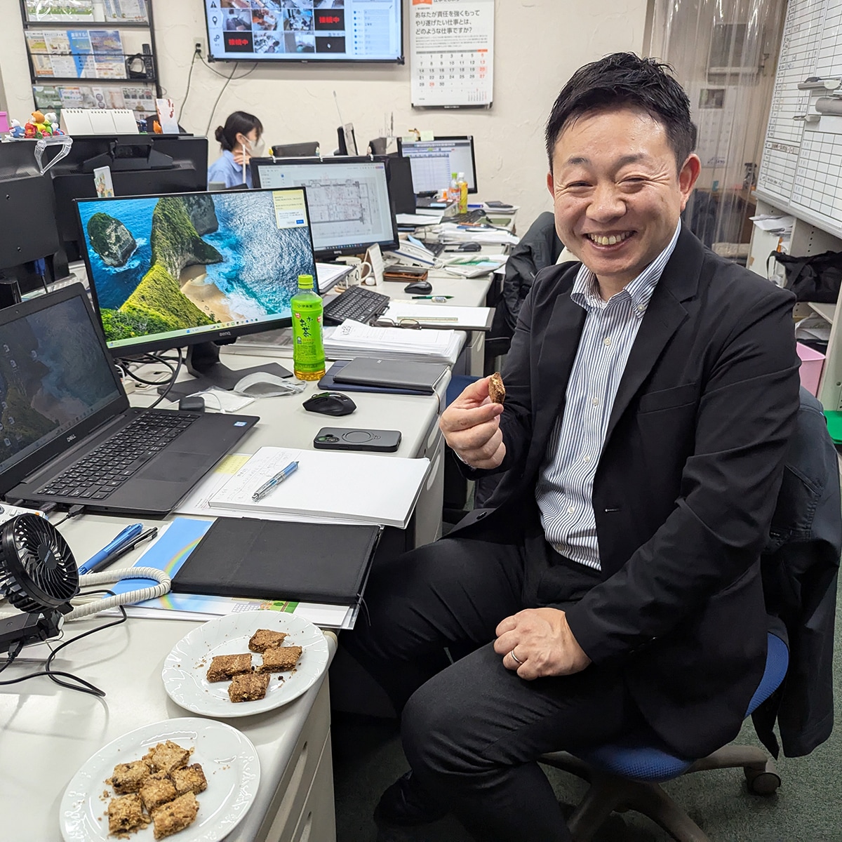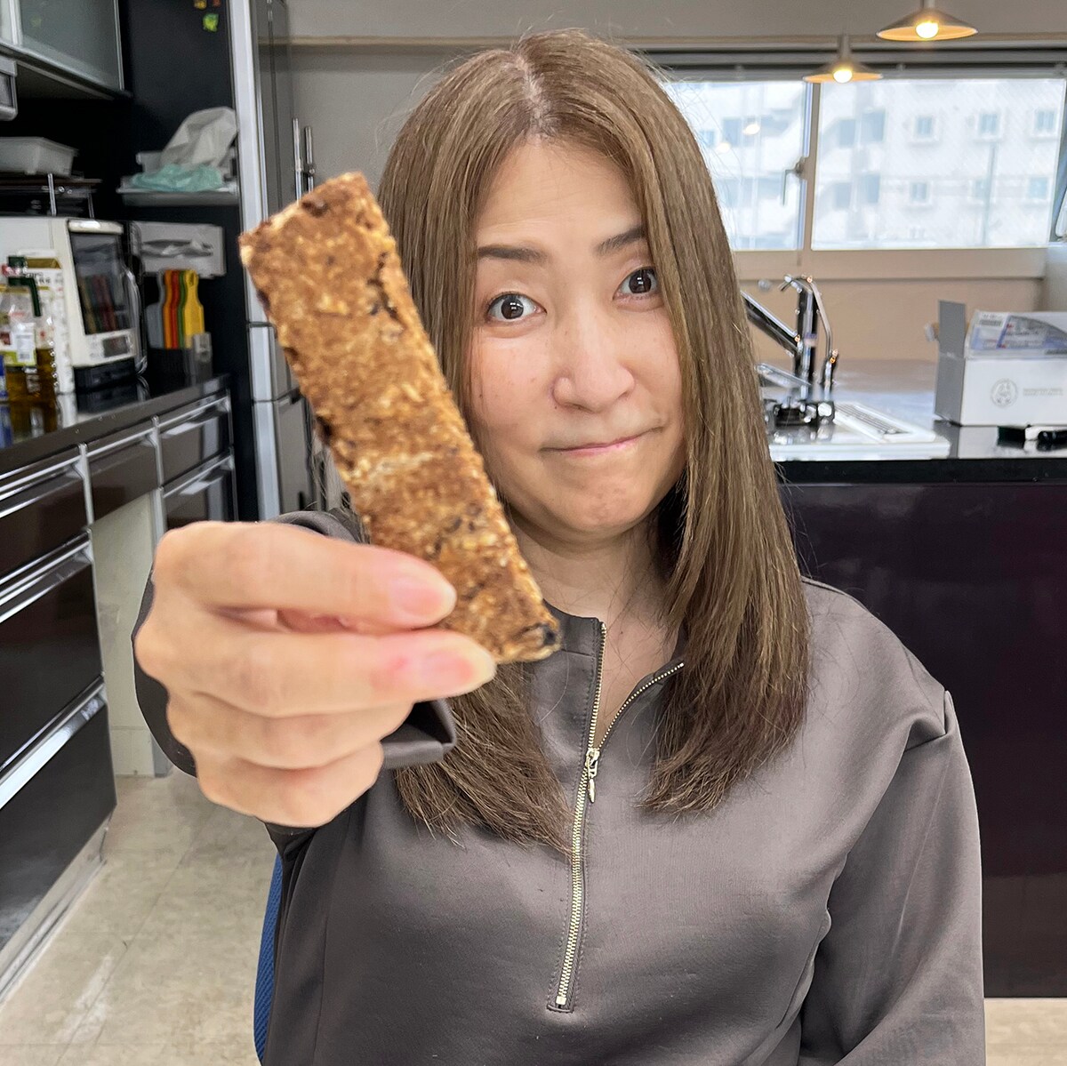 「あ、これはおいしい!小腹がすいた時にいいですね。ヘルシーな素材ばかり入っているから、私も罪悪感なく食べられます」