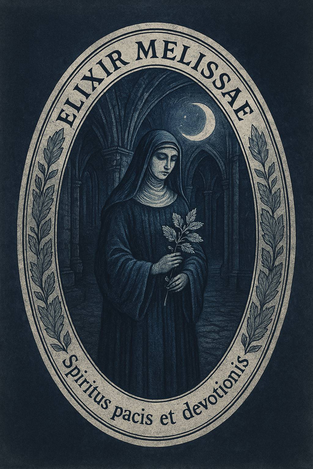 カルメル水にはレモンバームの霊的力「心を晴らし、魂を光(中心)に向かわせる」という象徴が込められてるそうです。「メリッサのエリクシール」は、まさに月夜に祈る修道女の静けさと癒しのような力を与えてくれるのですね。。。。ということで、AI制作してくれたメリッサ(カルメル水)のイメージです。