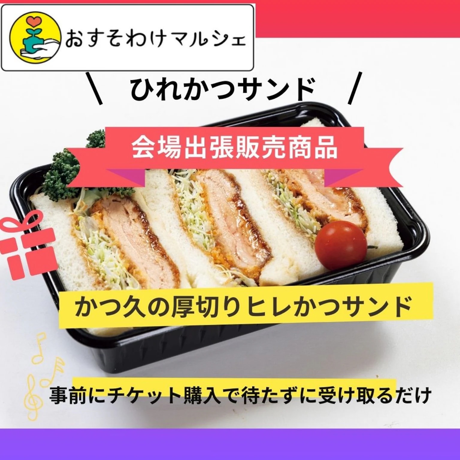 当日のおすそわけマルシェで行列に並ばずに【ひれかつサンド】と【かつ久弁当】が受け取ることができる、ウェブチケットが販売されております✨