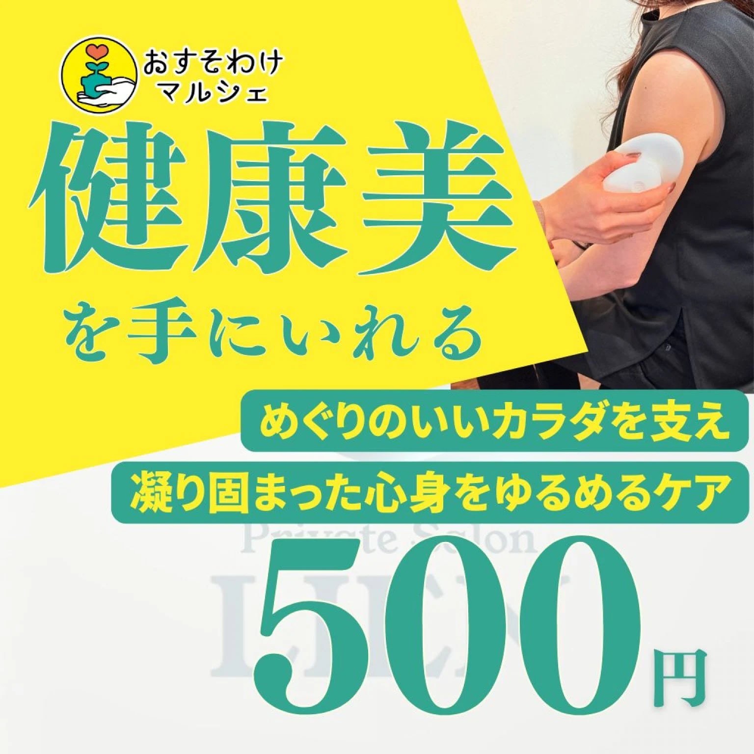 おすそわけマルシェでは、肩こり解消の腕ほぐしの施術が¥500で受けることができます✨
