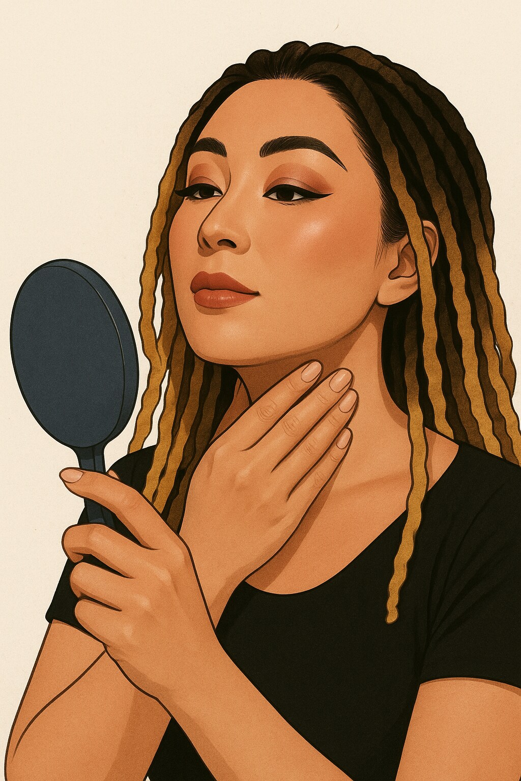 → 声帯まわりに手を軽く添えて、ゆっくり「はーっ」と息を吐いてみて。