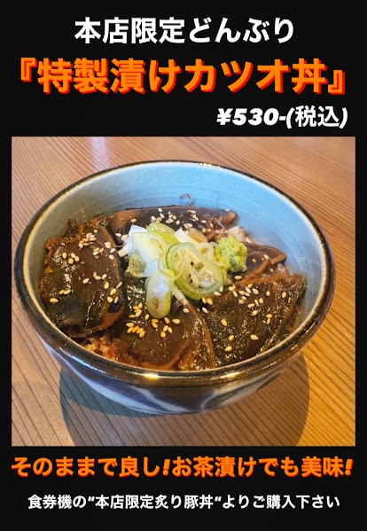 麺香房ぶしや独自配合の調味ダレに漬けたカツオは、白ごはんと相性バッチリ‼️
