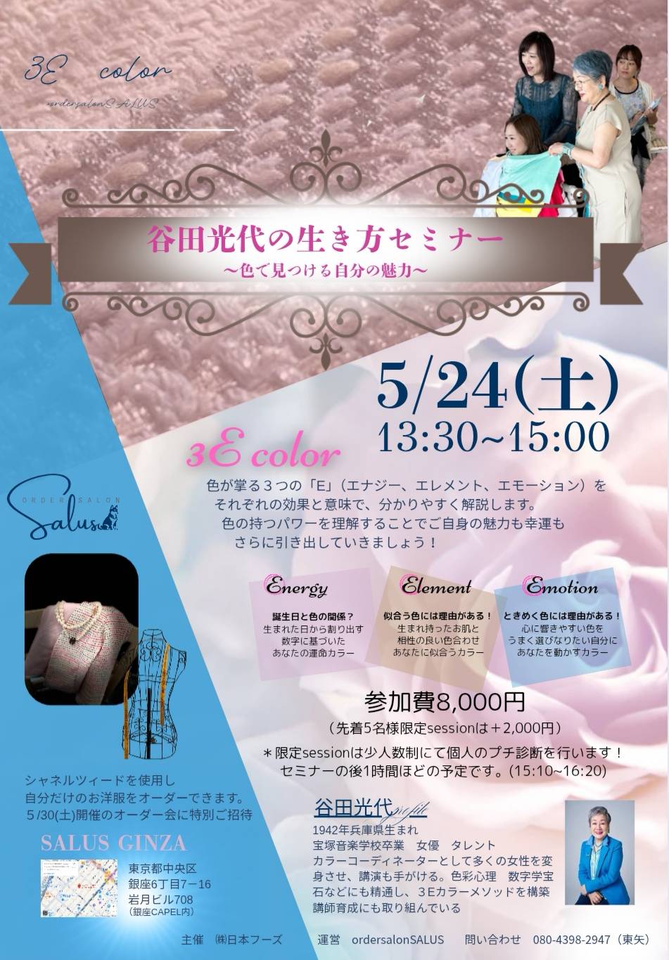 「谷田光代の生き方セミナー」〜色で見つける自分の魅力〜 が5月24日(土)13:30〜15:00に開催されます。