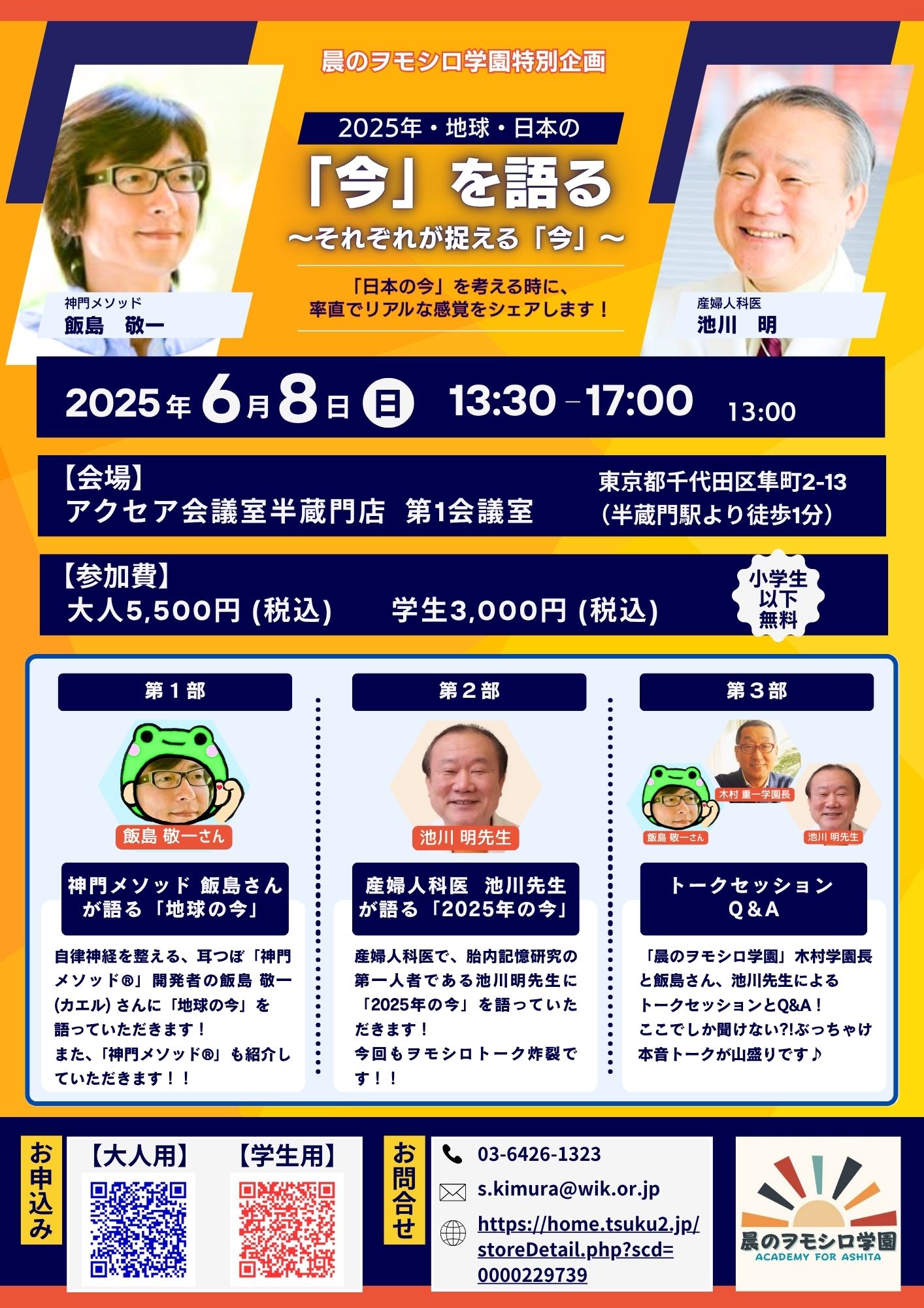 6/8(日)【晨のヲモシロ学園特別企画】「2025年・地球・日本の『今』を語る」を開催します