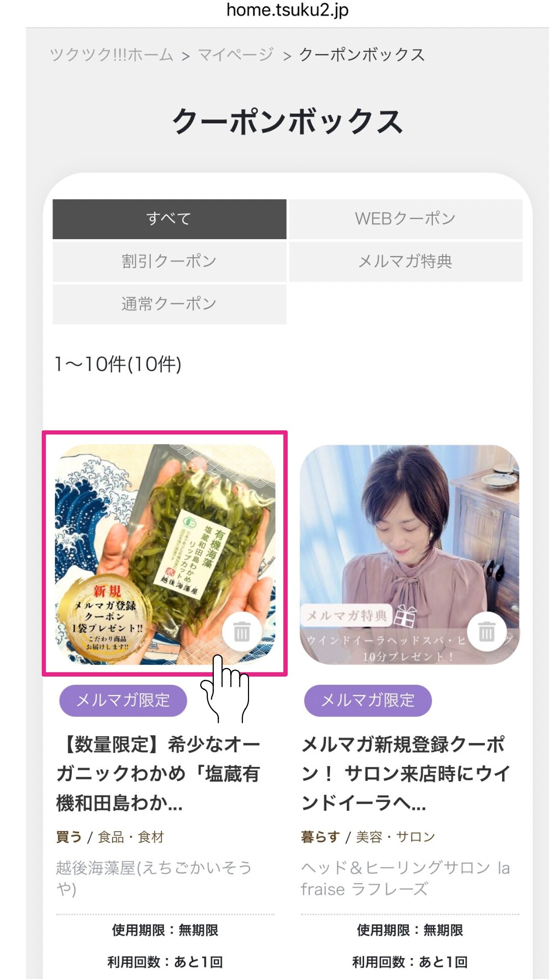 ③『マイページ』の『クーポンBOX』よりクーポンを選択します❗️