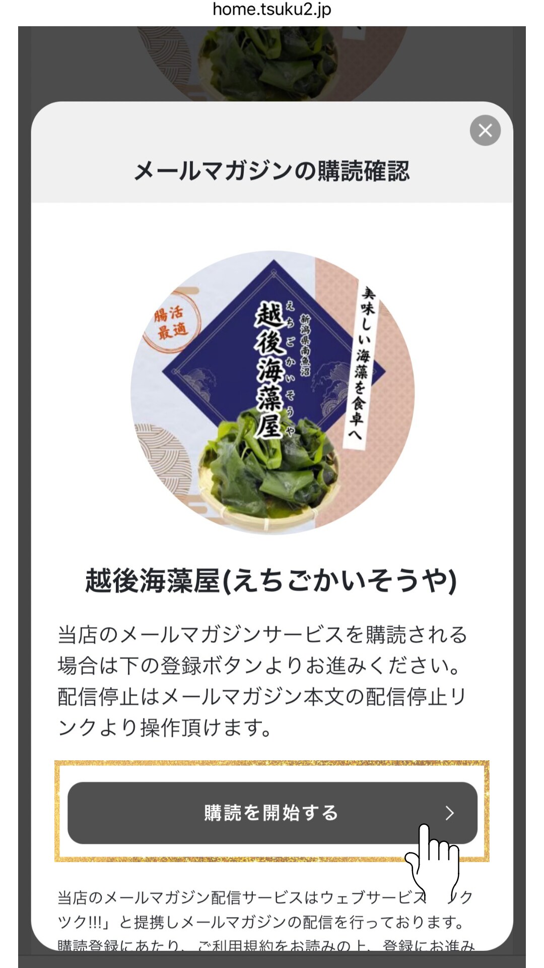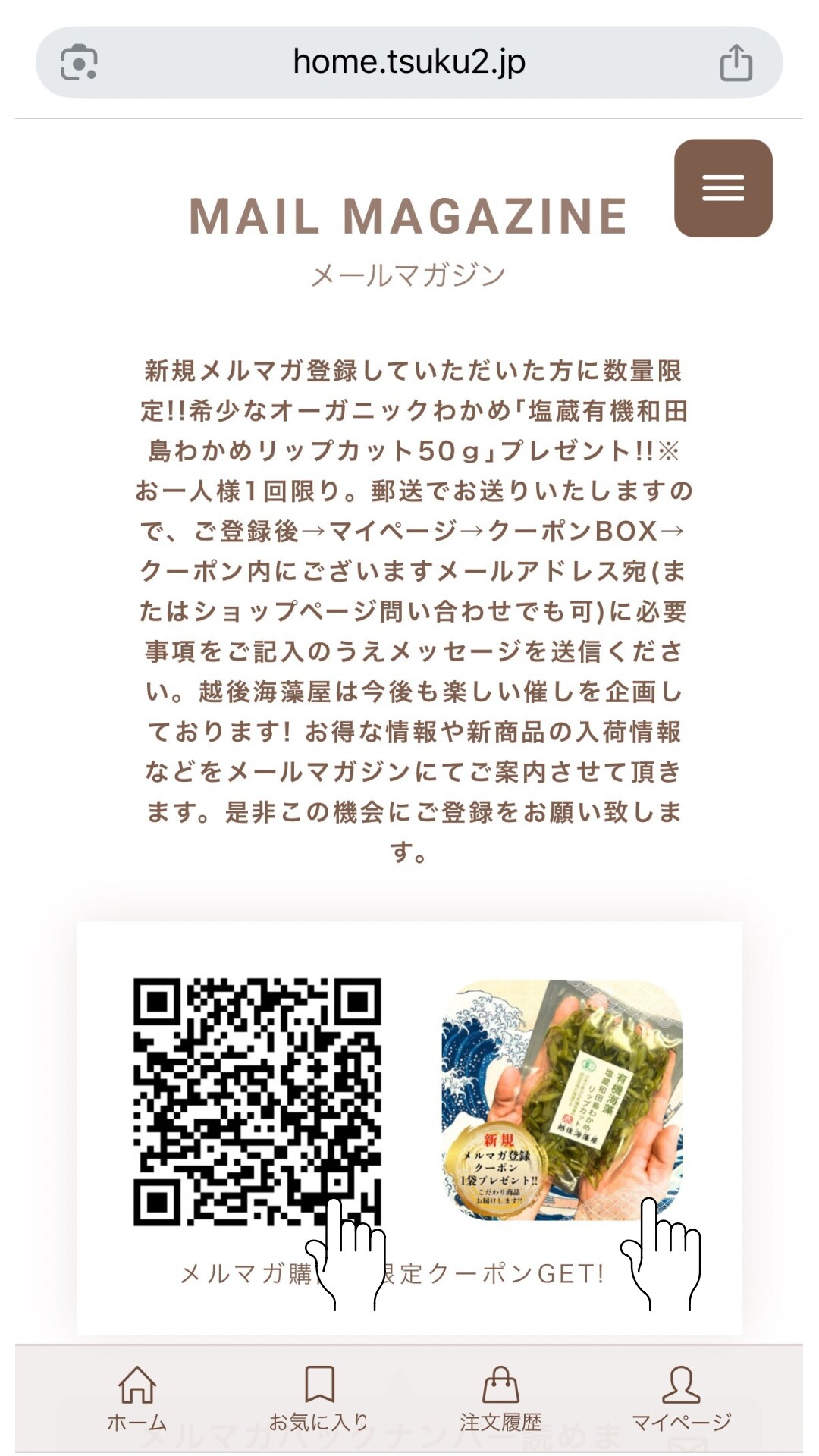 ①まずは【越後海藻屋】さんのページから、メルマガ登録📩