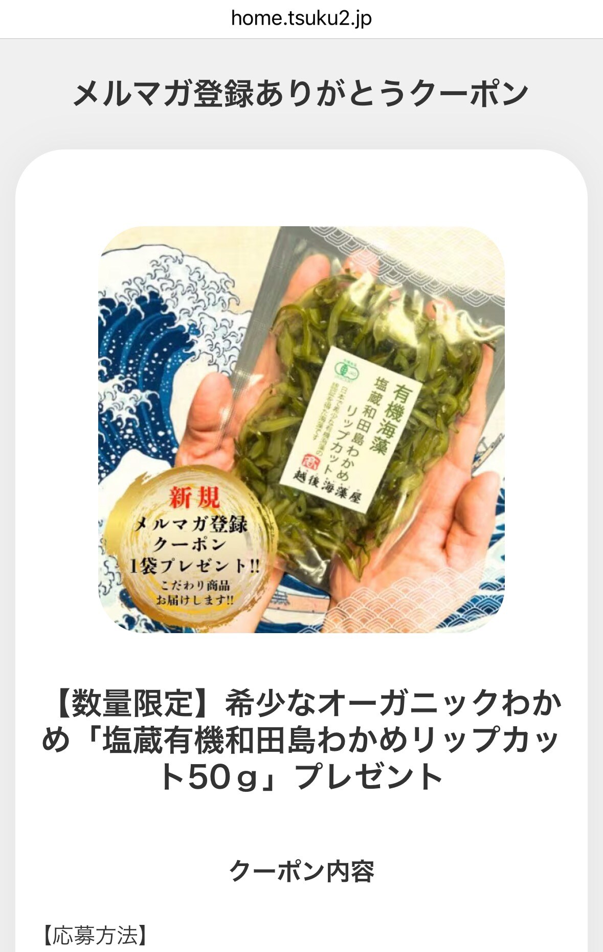 たったこれだけで、有機わかめを無料でGETできちゃいます🎵