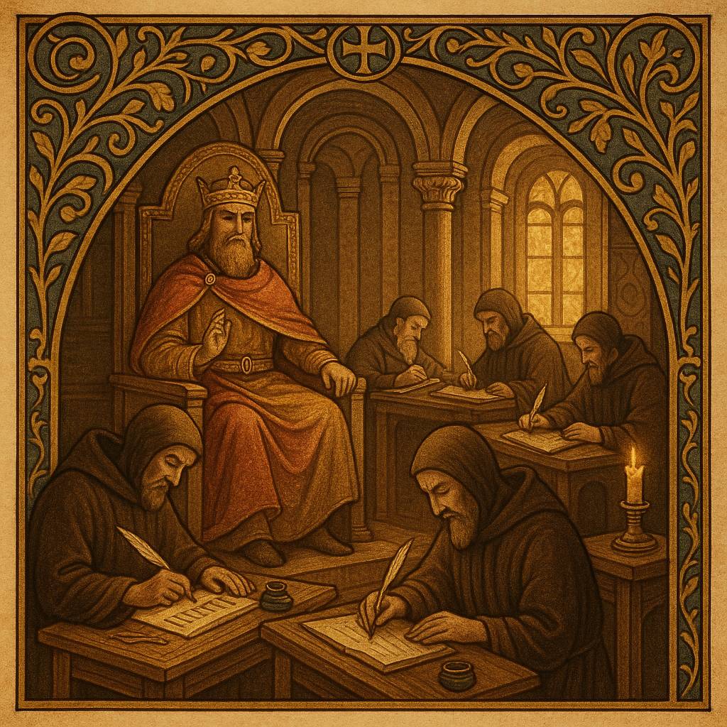 ここのところ、頻繁に活用しているChatGPTに作ってもらったイラストから始まりました。こちらのイラストですが「カロリング・ルネサンス」のイメージ画像です。