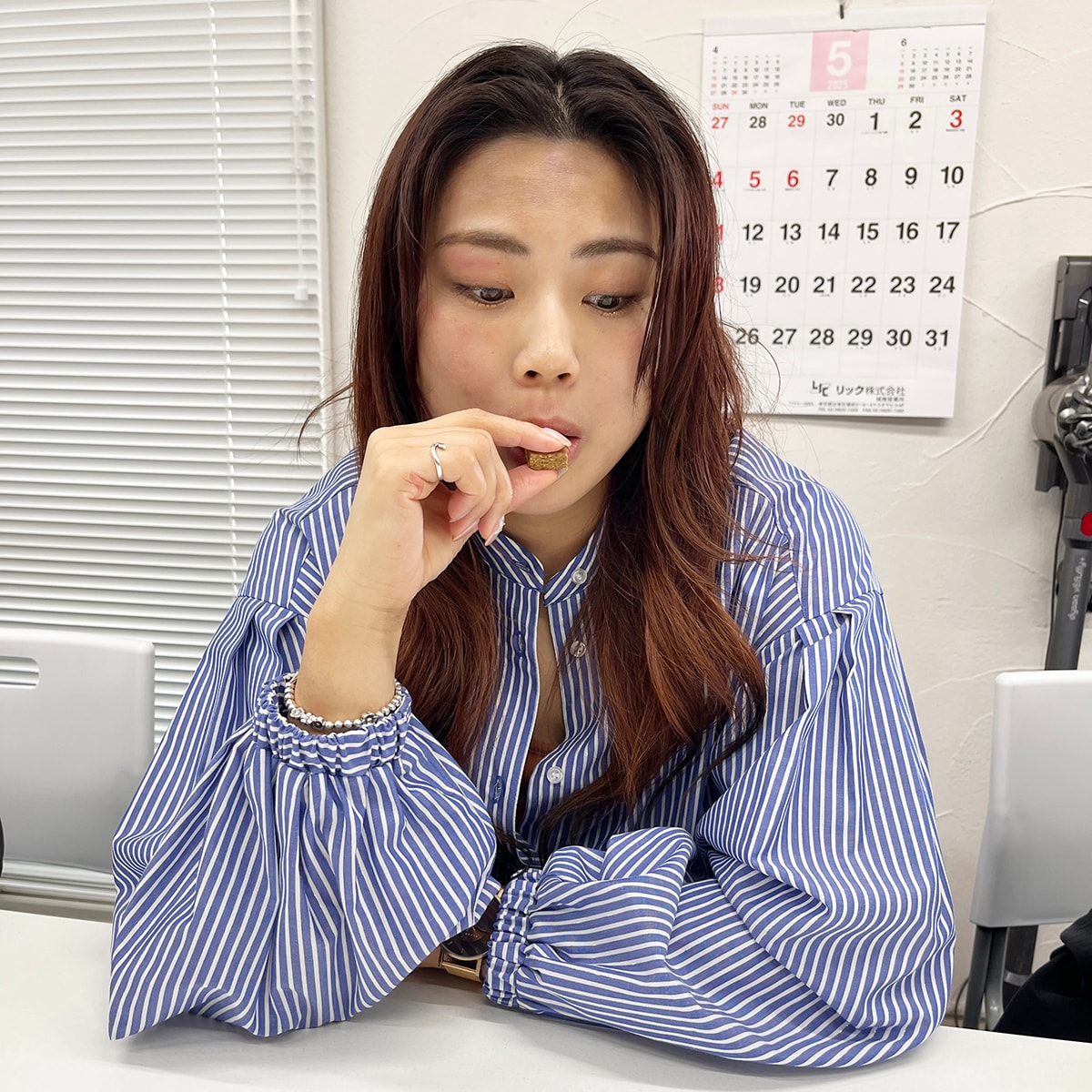 「甘さ控えめですね。普段お菓子をほとんど食べないのでこれくらいがちょうど良い甘さに感じます」