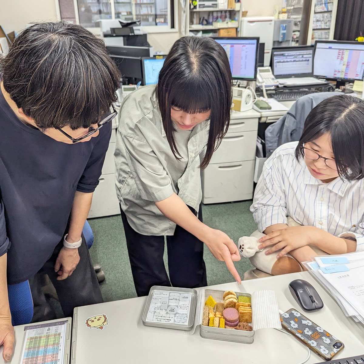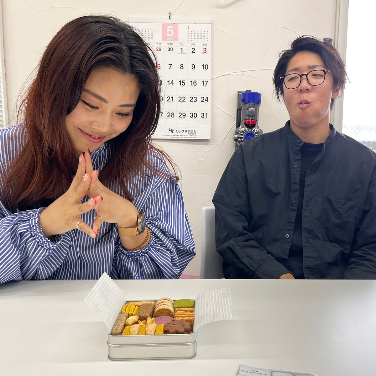 内装担当の岸(右)「私も紅茶のクッキーが好きです!風味がいいですね」