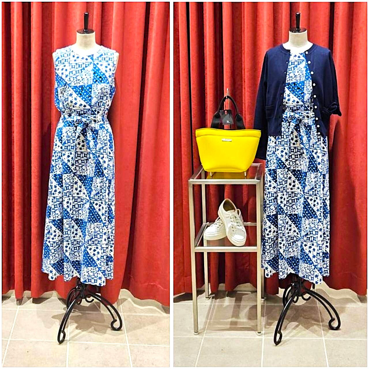 BlueとWhiteのプリントが爽やかな、ブラウス&スカートのセットアップ(iBLUES イブルース)