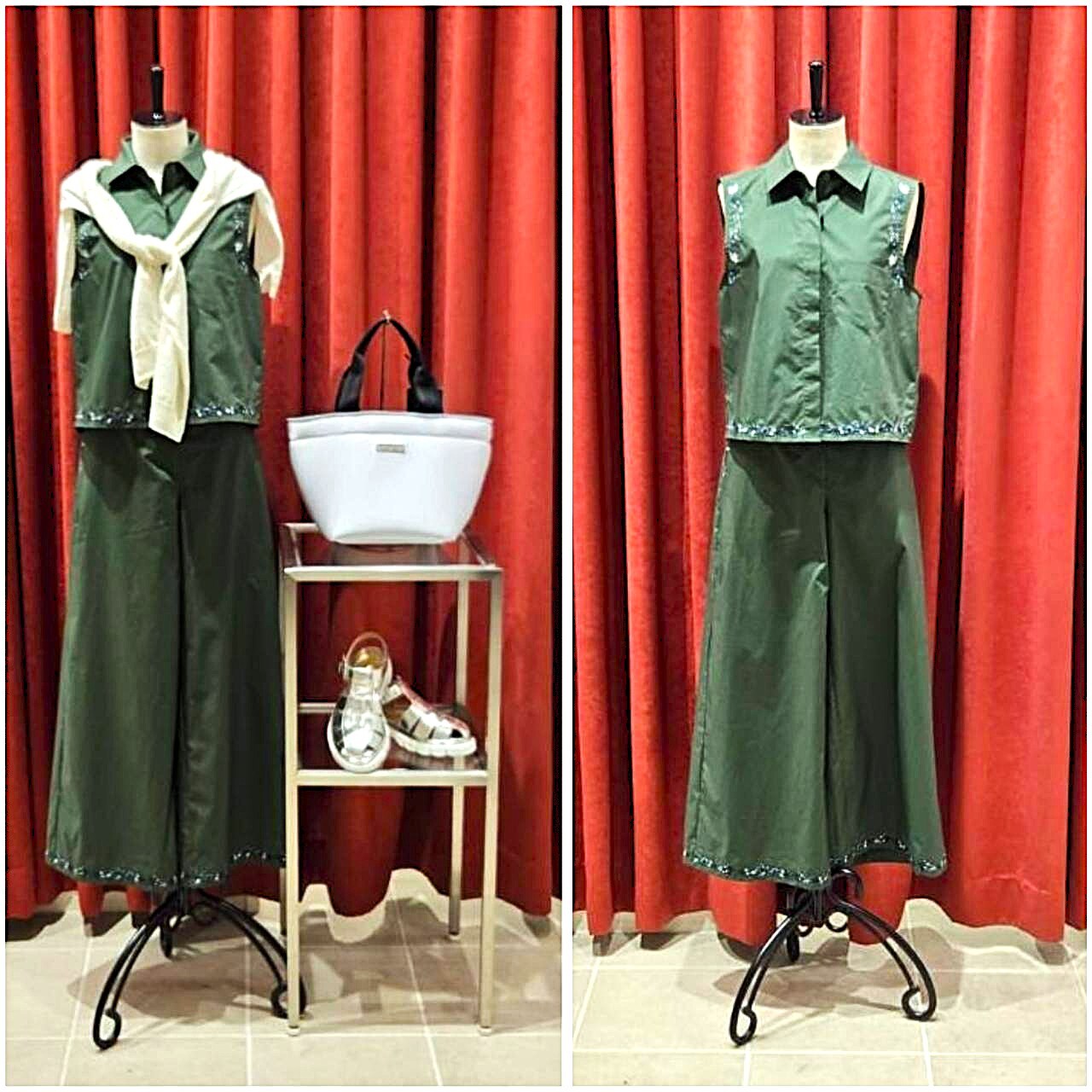 Green刺繍使いの、ノースリーブシャツ&パンツセットアップ(MARELLA マレーラ)