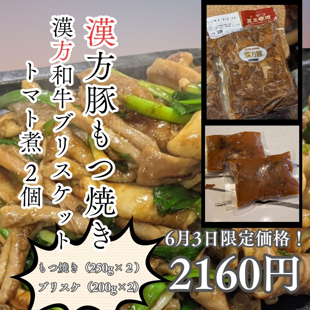 幸之助の日『漢方豚もつ焼き』 &『漢方和牛ブリスケットトマト煮』セットで2160円!早い者勝ち!