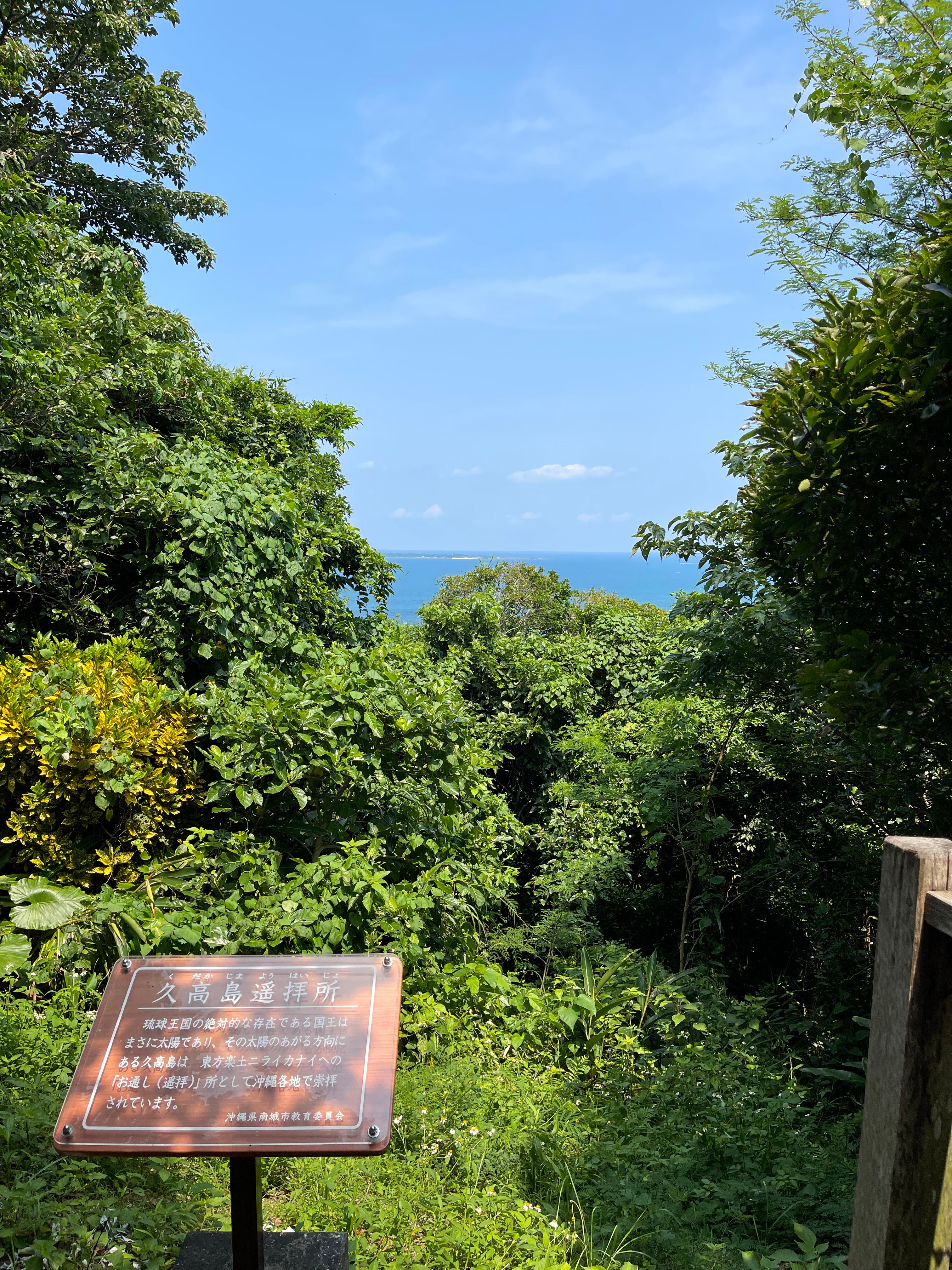 そして斎場御嶽(せーふぁうたき)の久高島参拝所から平たい久高島を眺めて、久高島参りをコンプリート!