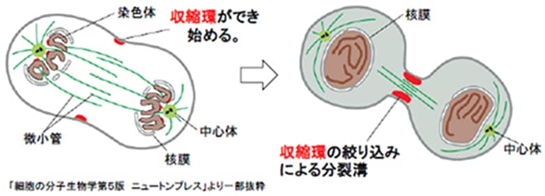 細胞分裂の際に母細胞を姫細胞2つに分けるときに