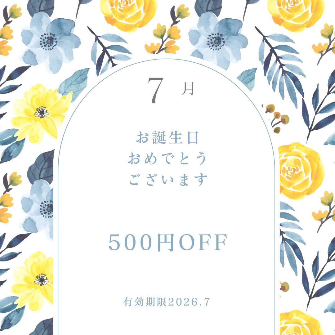 お誕生月より1年間有効です。(ツクツクとの併用はできません)