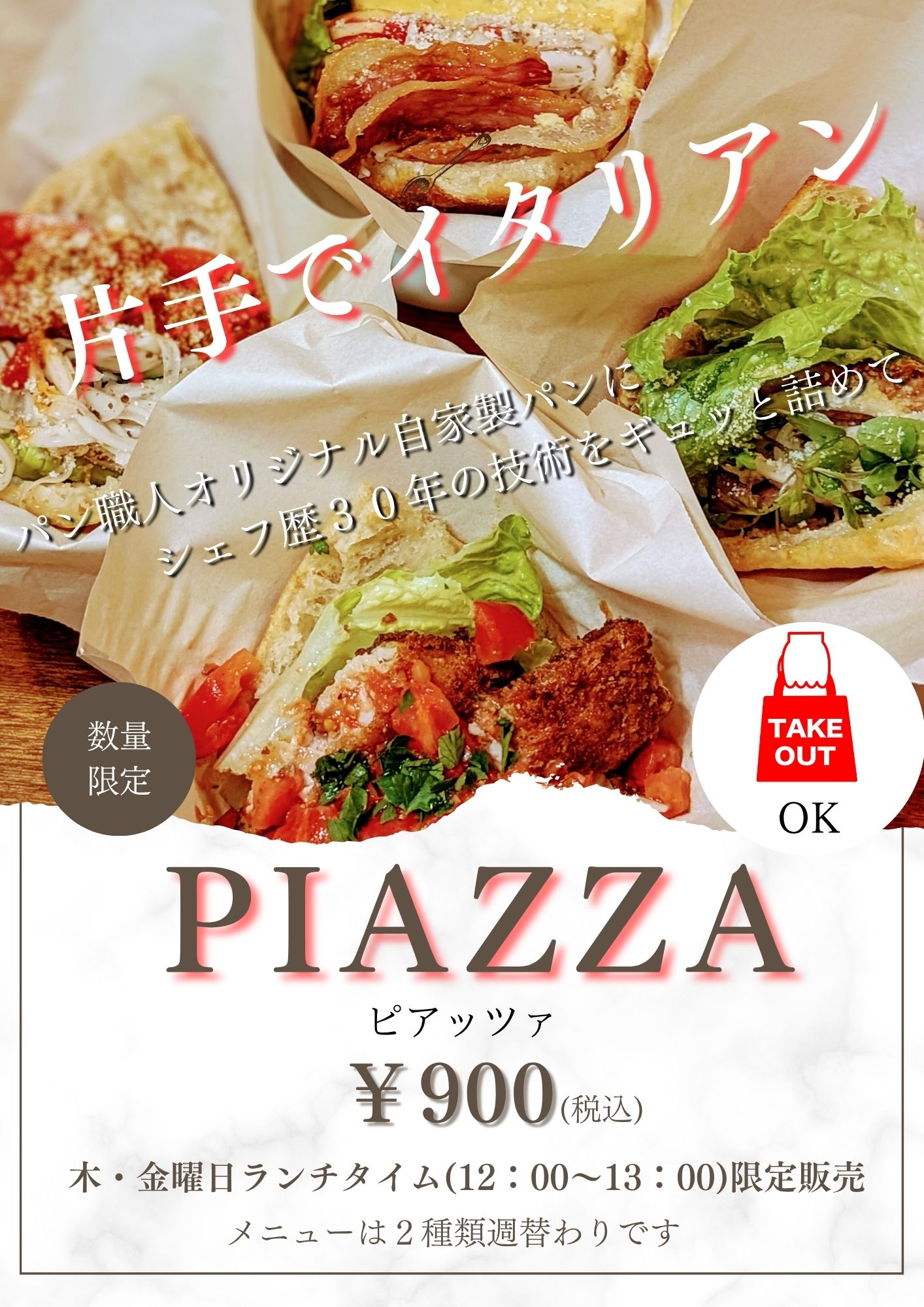 PIAZZA(ピアッツァ)はピッツァではなくイタリアンサンドイッチです。