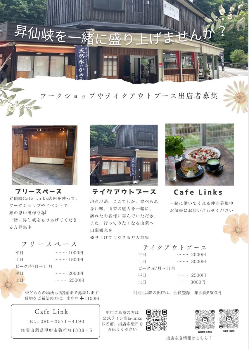 【MamCafe】昇仙峡で地域と人をつなぐーCafe Links 出店者募集! vol.897