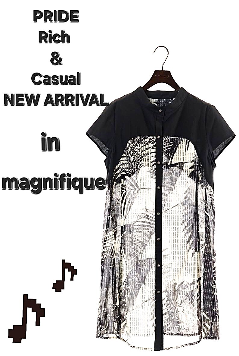♡ PRIDE(プライド) からも新作が入荷いたしました✨ 今日の一枚は、程よい丈がスタイルアップして見える、計算されたカッティングのブラウスです😊 配色はベーシックですが、ビジューボタンもポイントの1つに✨