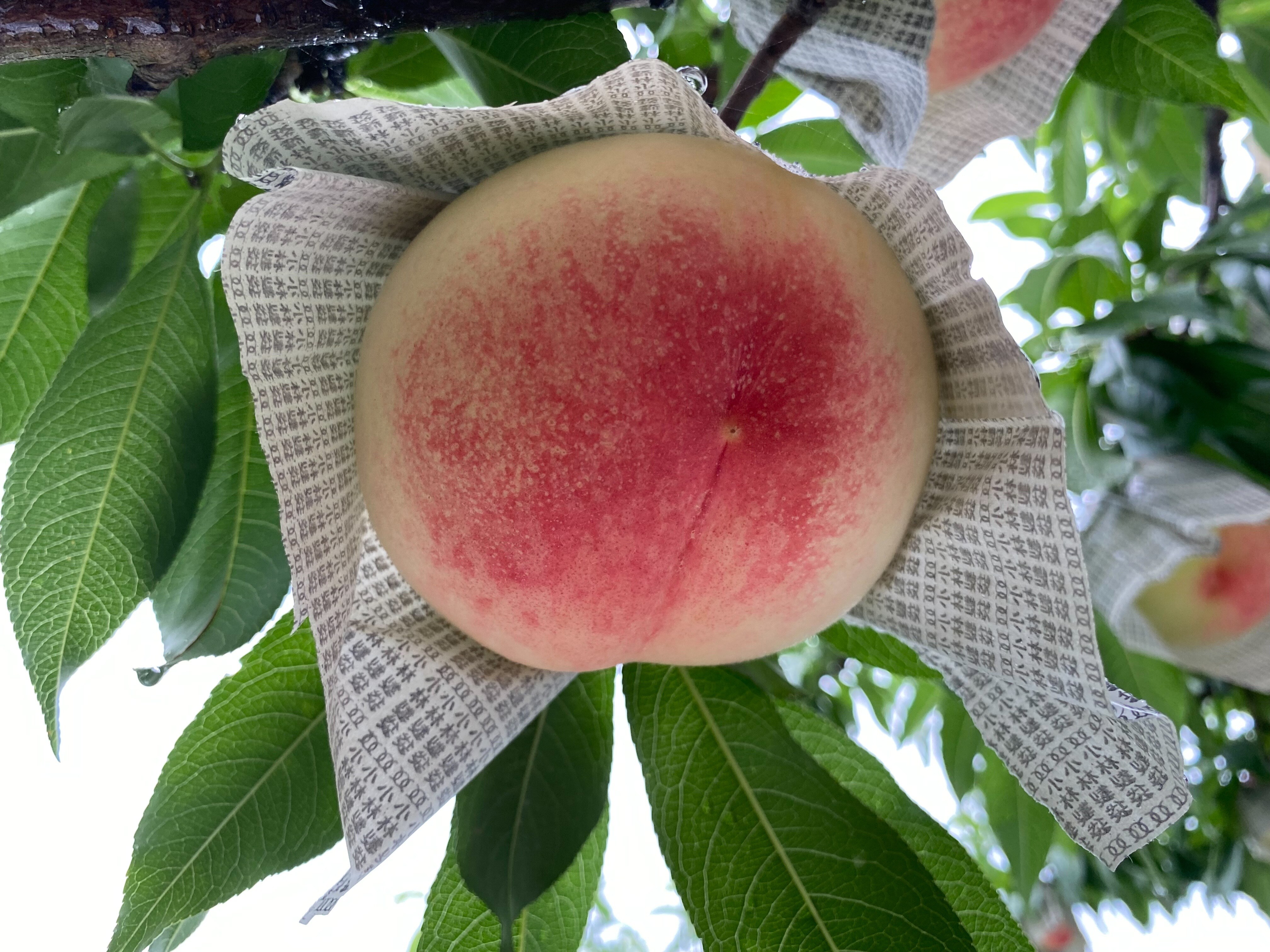 〈畑では白鳳が少しずつ色付いてきました♪〉
