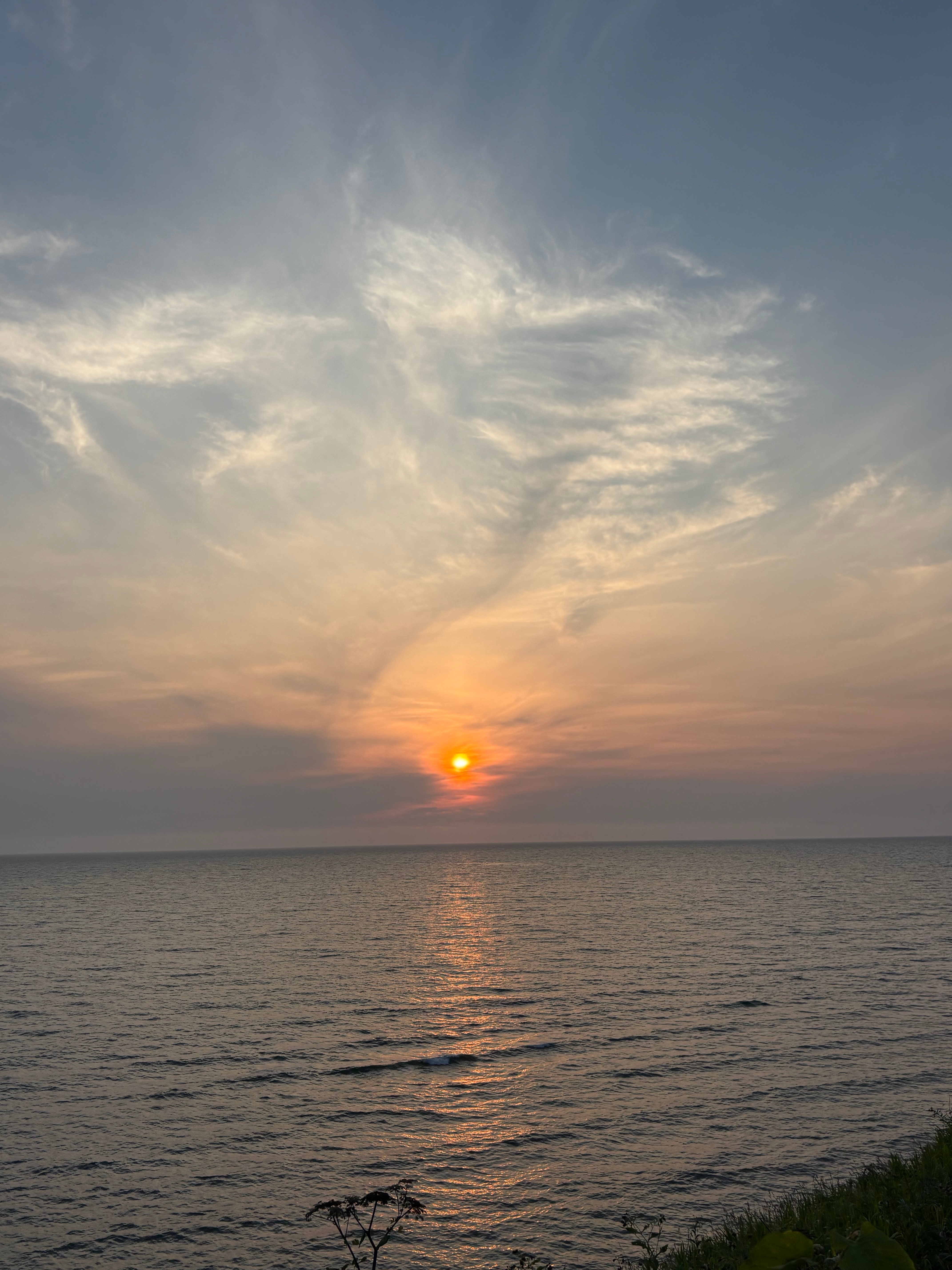 いやぁ〜、久々に見る海に落ちる夕陽は綺麗でした〜。