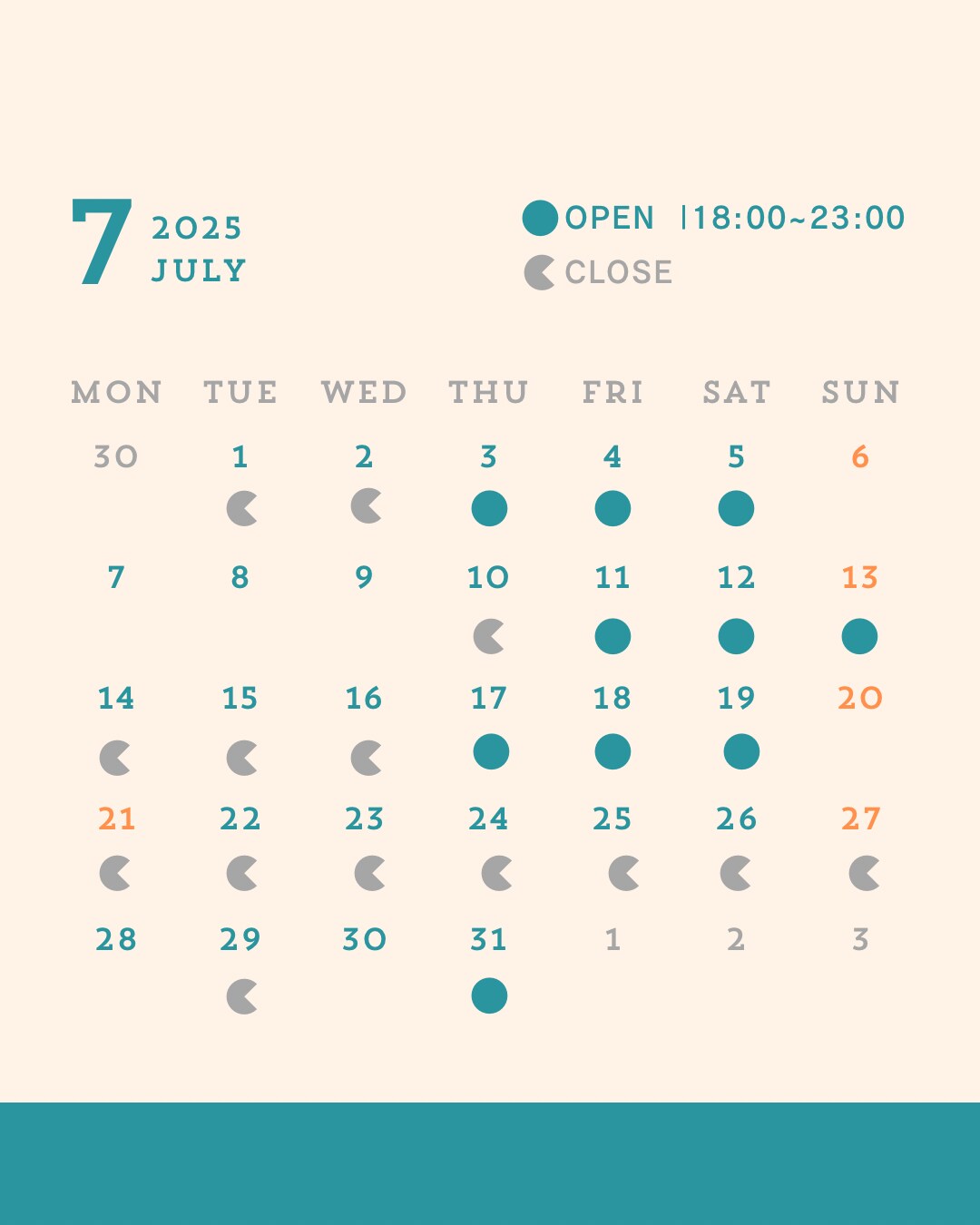 七月の予定、なんだかお知らせが薄くなっちゃいましたけど、お問い合わせ、ご予約お待ちしております。