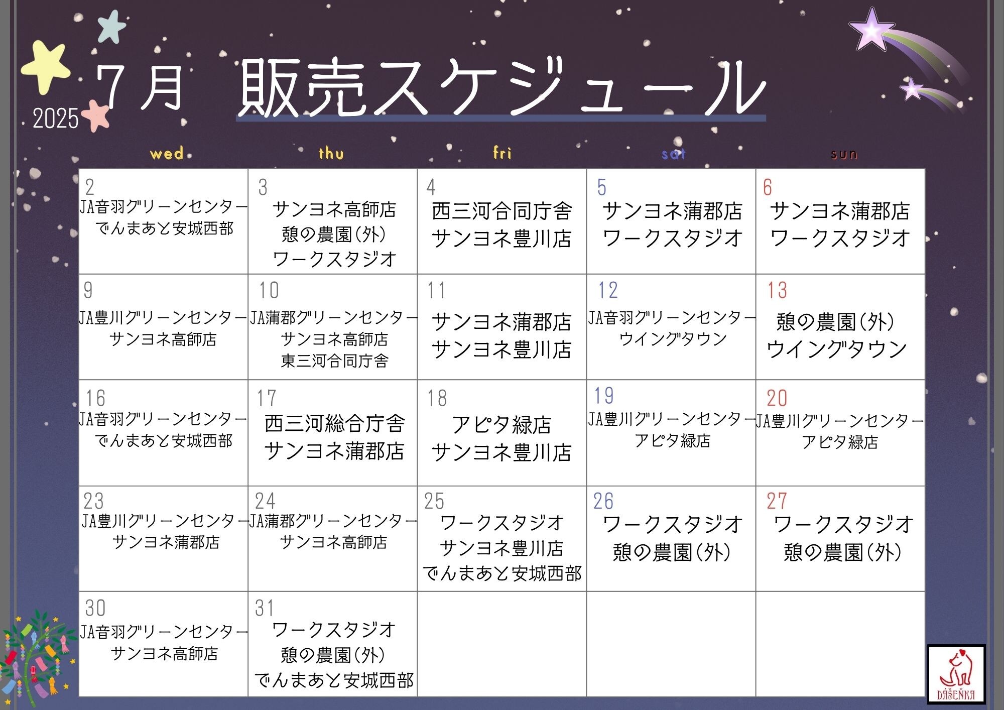 7月は3ヵ所での販売日がありますので美味しいパンの購入できるタイミングがたくさんあります!!