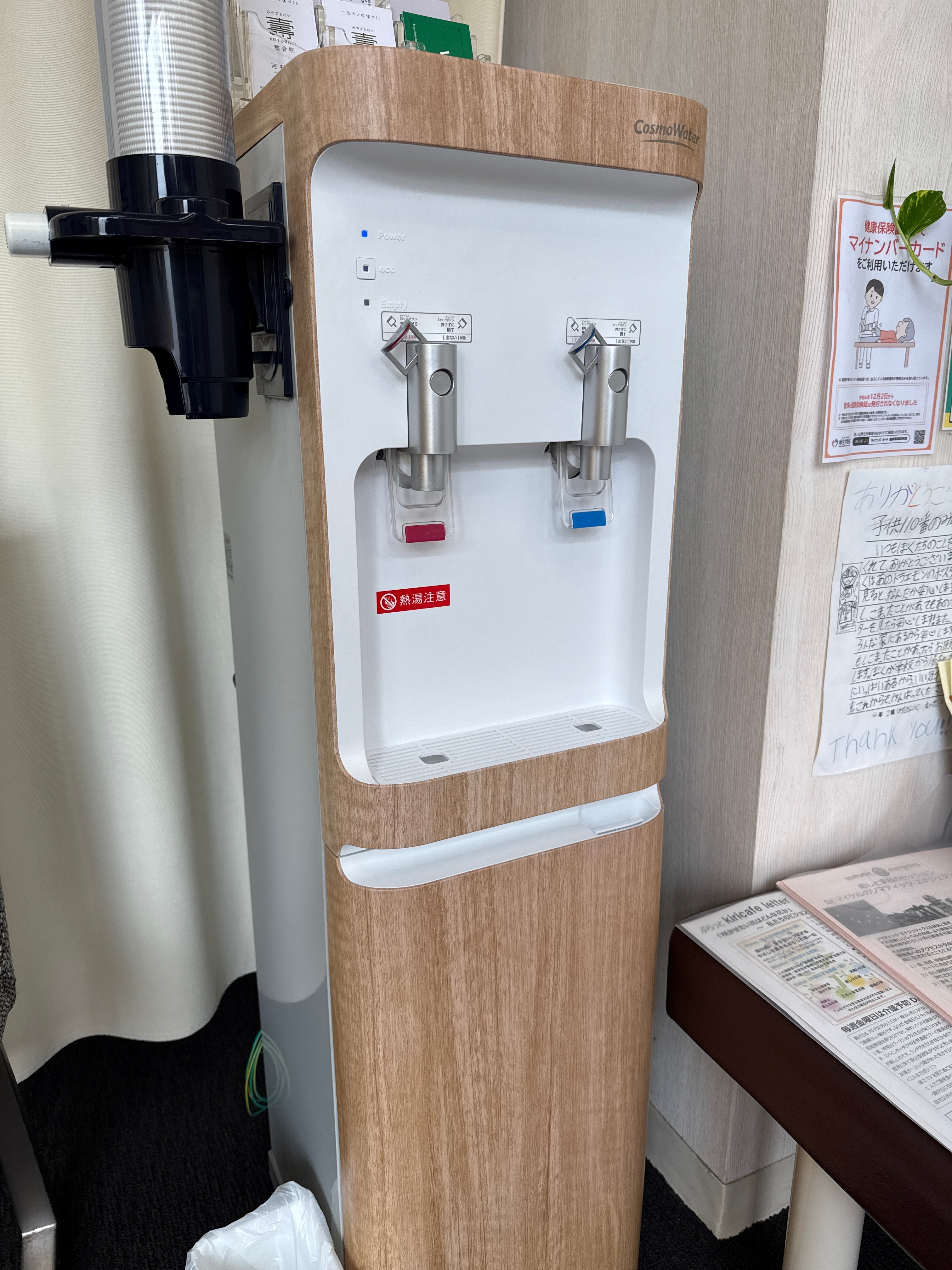 :冷たい富士山の美味しいお水でひと呼吸してご案内。