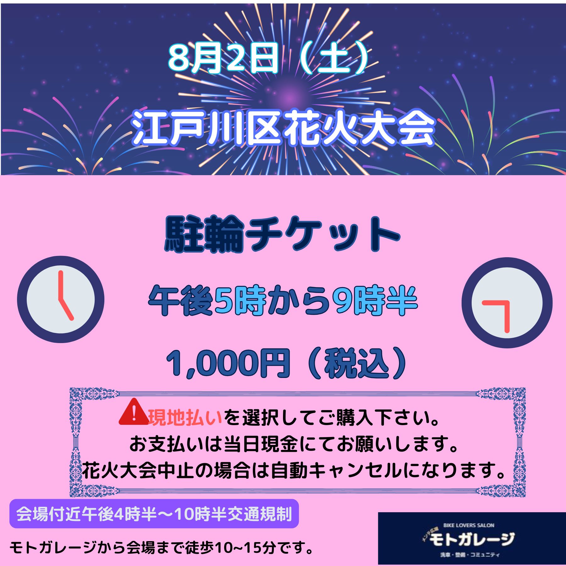 今年も駐輪予約始まっています/8月2日(土)江戸川区花火大会